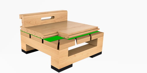 運(yùn)動(dòng)木地板場(chǎng)地的結(jié)構(gòu)由彈性墊層或彈性結(jié)構(gòu)層、彎曲剛性強(qiáng)的載荷分布層(龍骨或毛地板)、面層(面層地板)三層構(gòu)成。